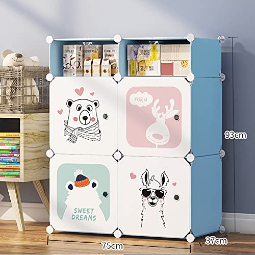 Tarkan Kids Wardrobe Closet, DIY Modular Storage Organizer with Doors, Sturdy & Safe (Blue)