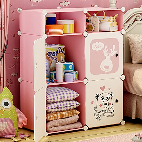 Tarkan Kids Wardrobe Closet, DIY Modular Storage Organizer with Doors, Sturdy & Safe (Pink)