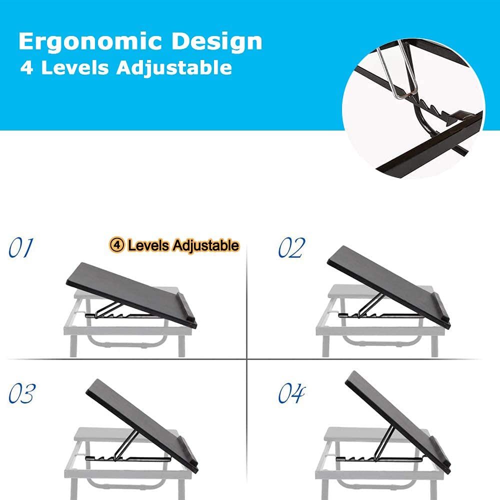 - Ergonomic Design】The laptop desk has four adjustable angles, which can be adjusted according to needs. The ergonomic design allows you to get the best experience every time you use it, and the bezel on the desktop can well fix your computer so that it will not slip off easily.