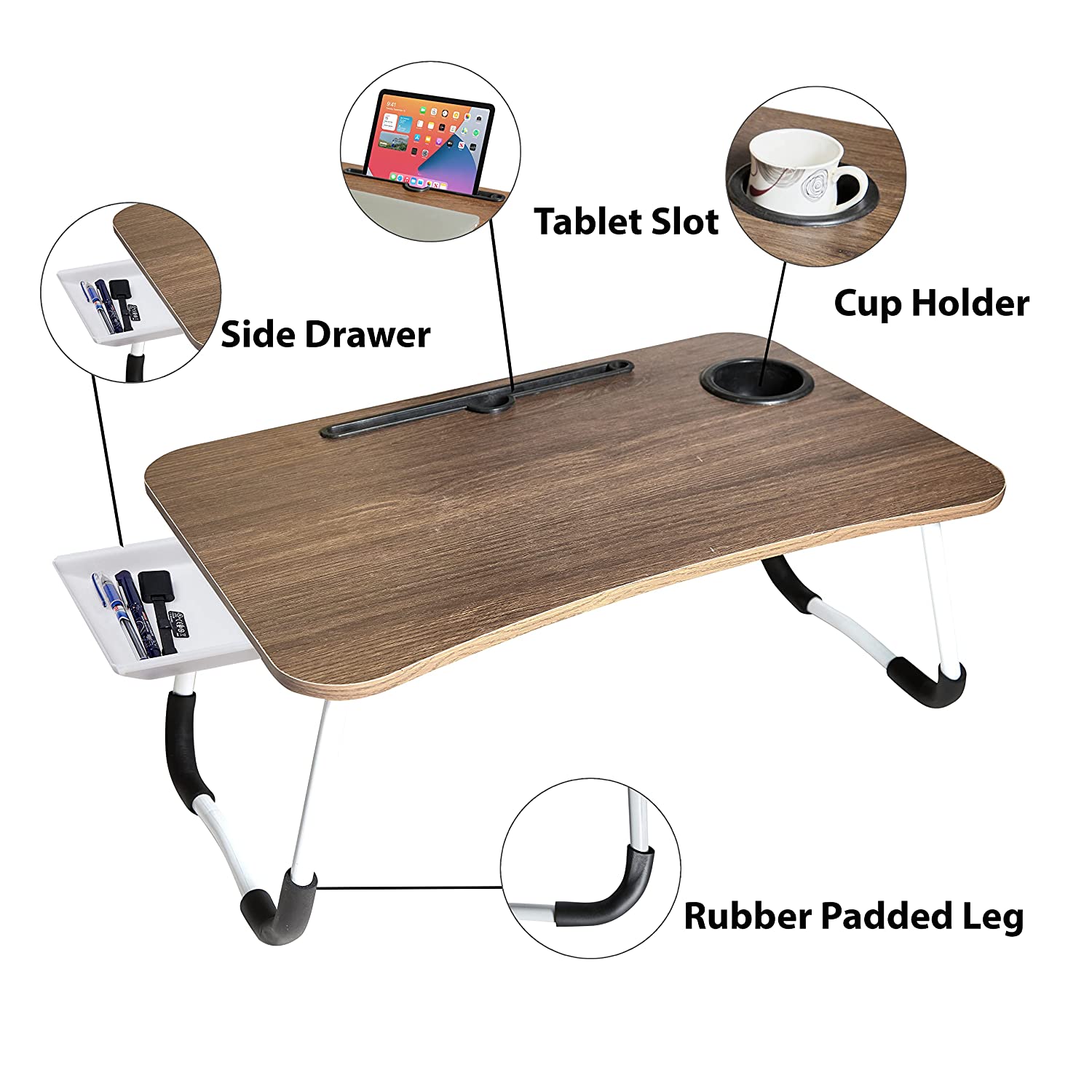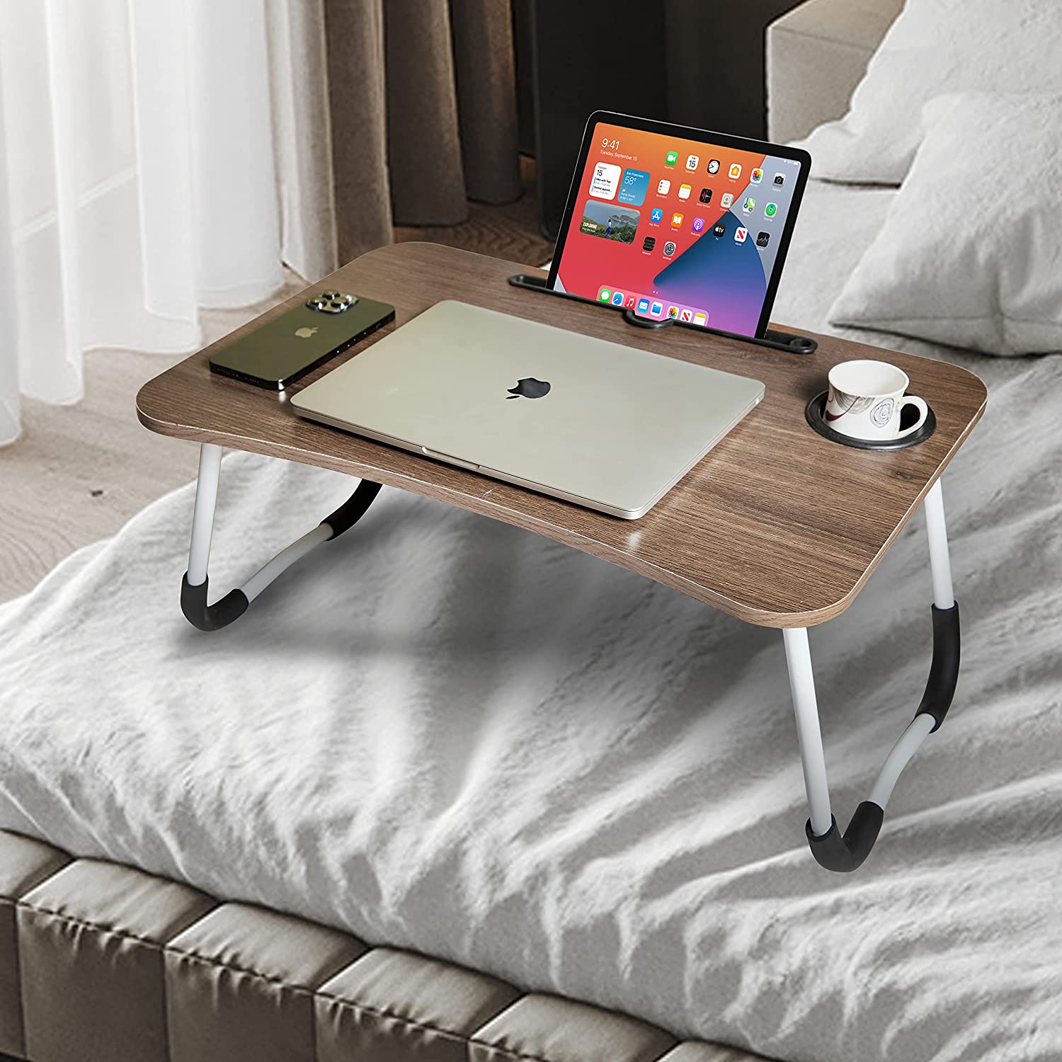 GoRogue Laptop Desk for Bed with Cup Holder & Drawer, Portable & Foldable Work from Home Tray Table for Writing, Reading, Eating (Forest)