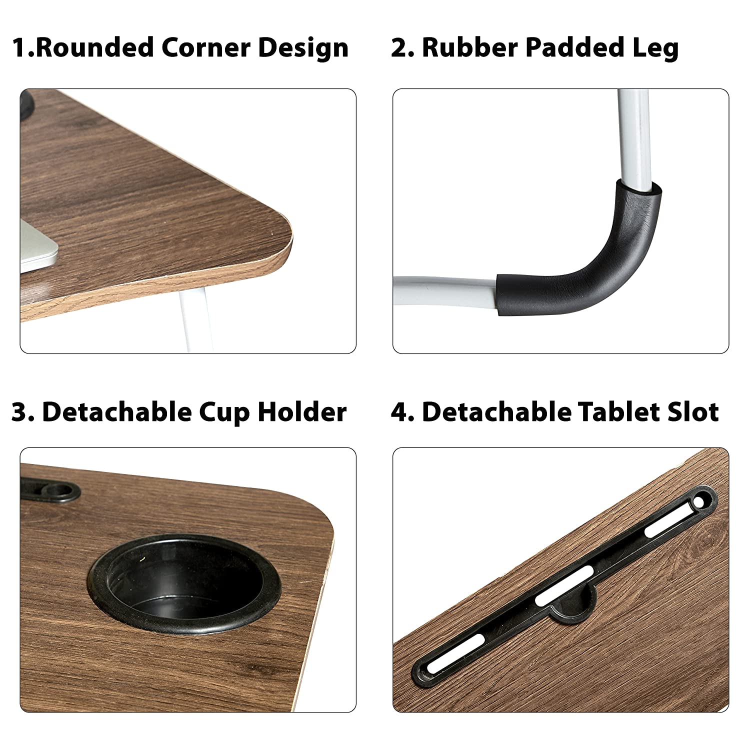 • 【Ergonomic Design】The laptop desk has four adjustable angles, which can be adjusted according to needs. The ergonomic design allows you to get the best experience every time you use it, and the bezel on the desktop can well fix your computer so that it will not slip off easily.