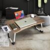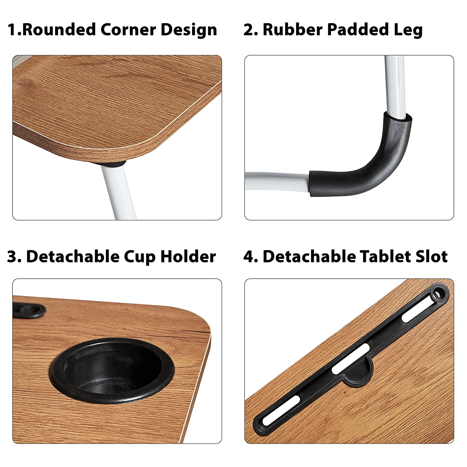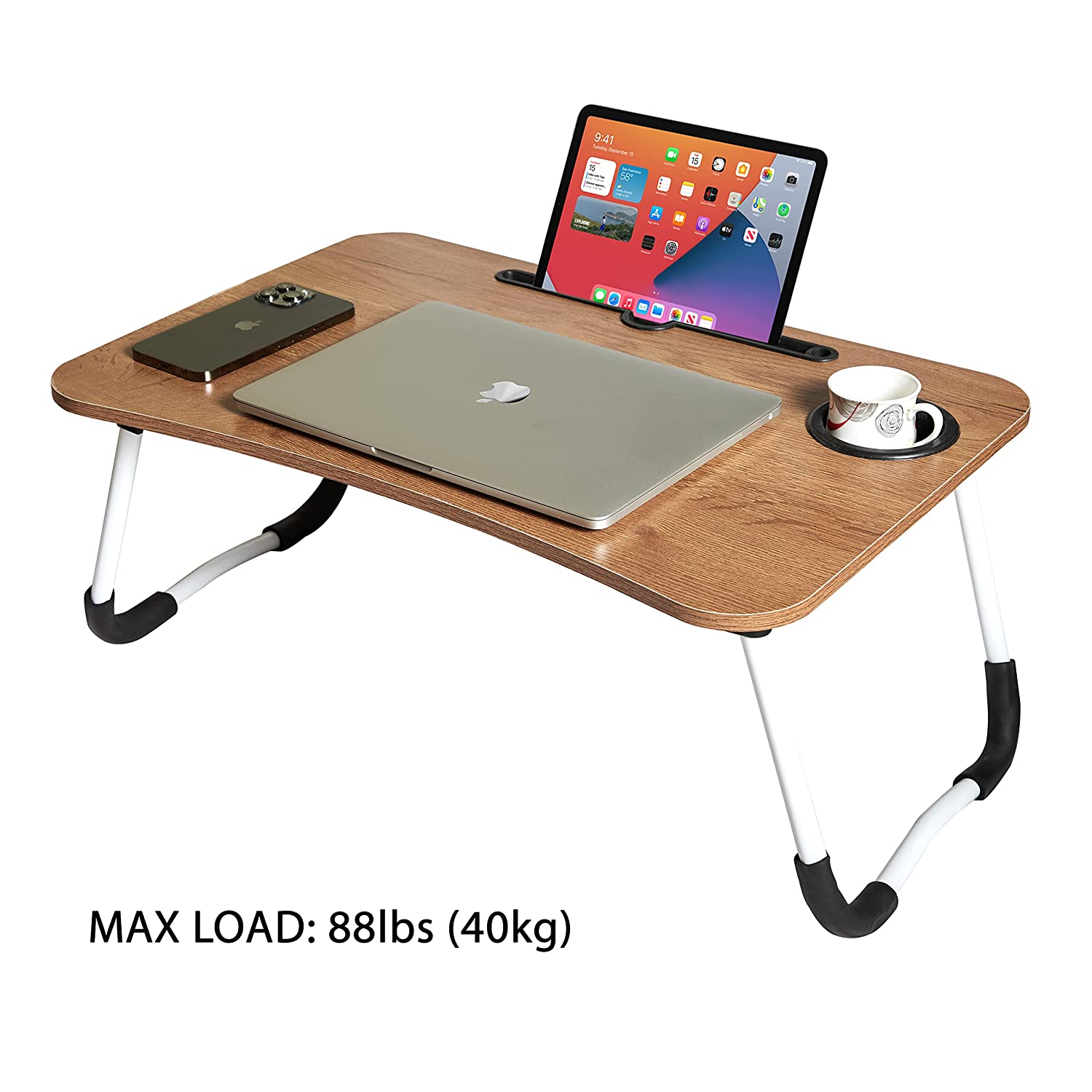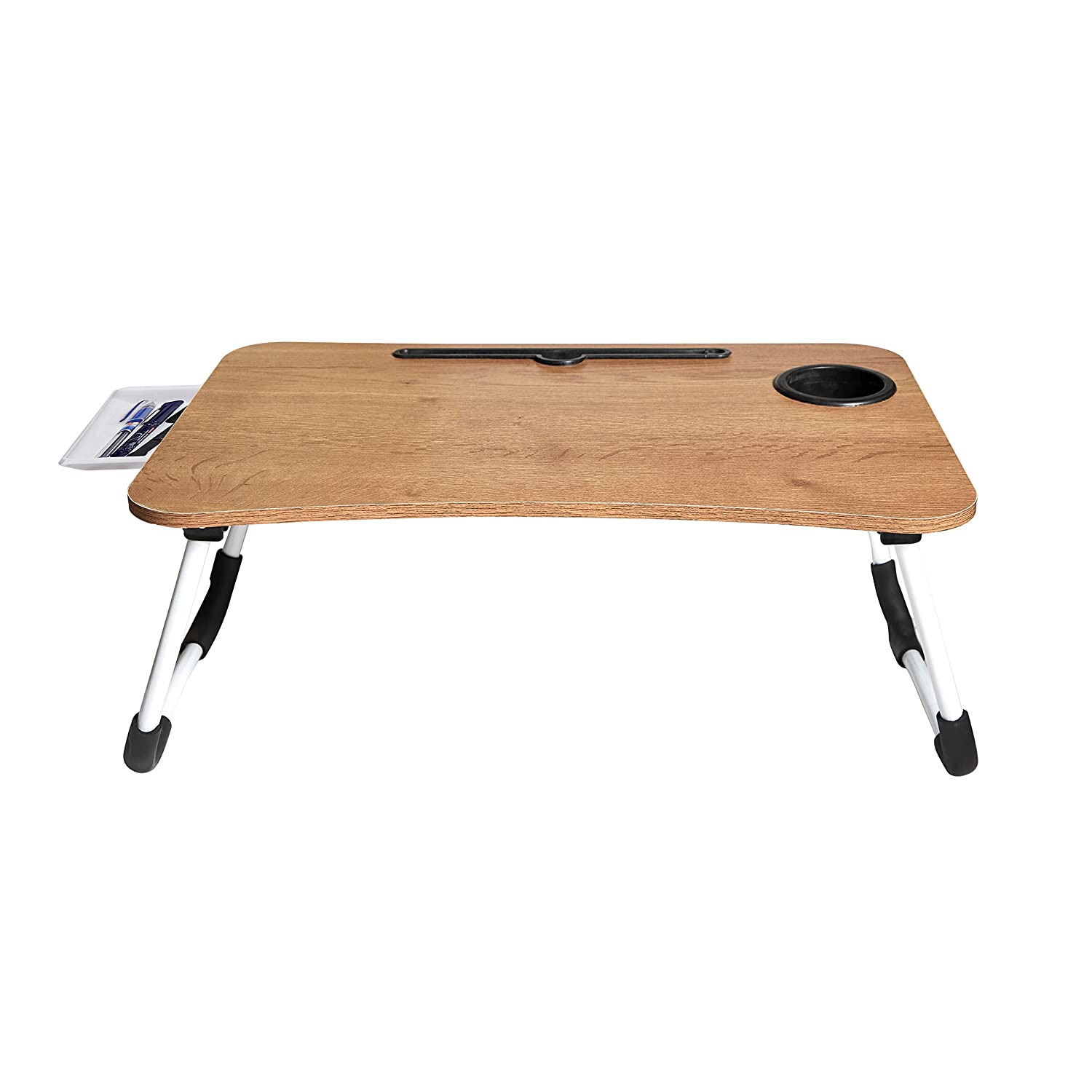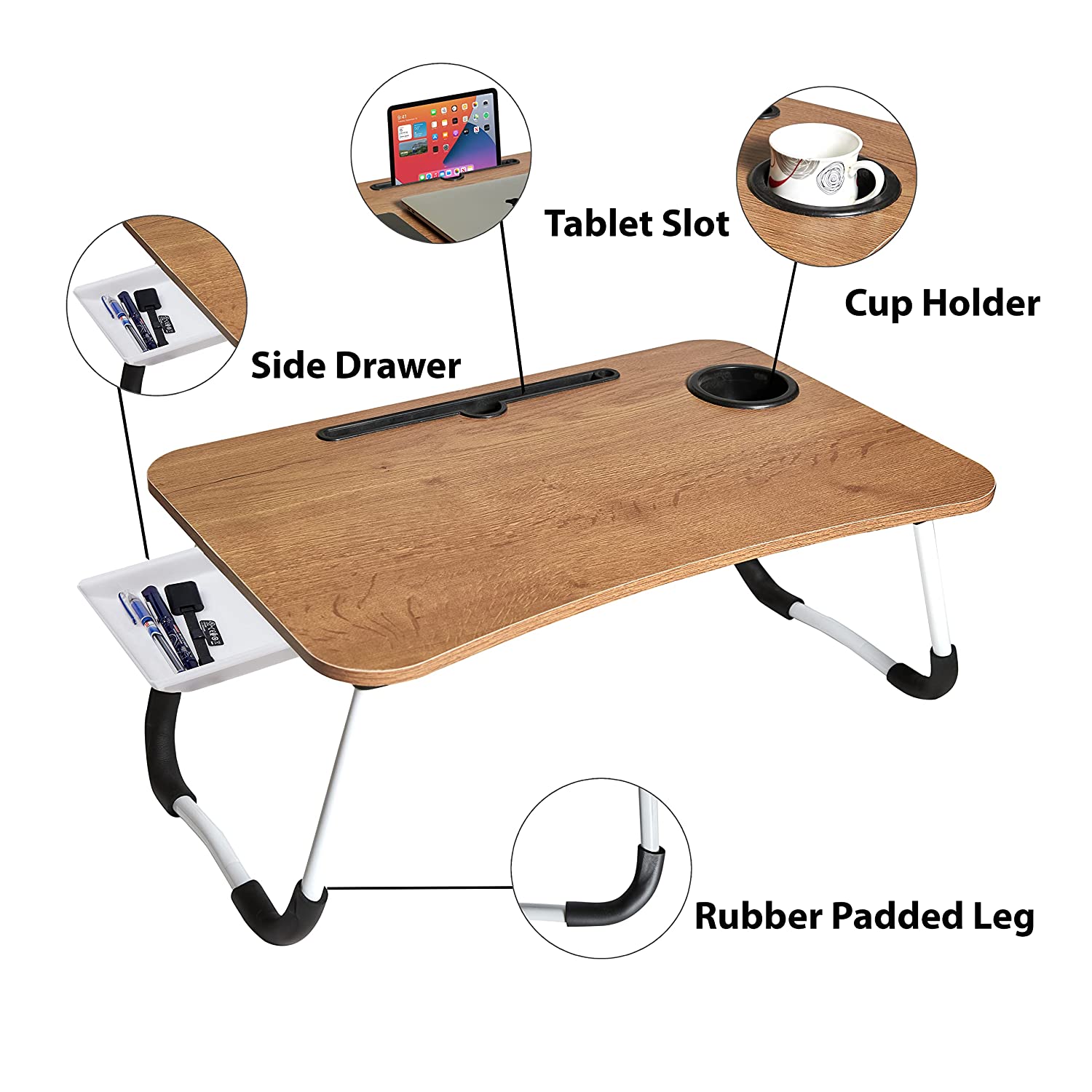 GoRogue Laptop Desk for Bed with Cup Holder & Drawer, Portable & Foldable Work from Home Tray Table for Writing, Reading, Eating (Oak Dark)