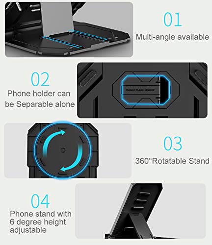 Tarkan 360° Rotating Multi Angle Ventilated Stand for All 12 to 15.6 Inch Laptops Notebook MacBook Air Pro with Mobile Holder (Black)