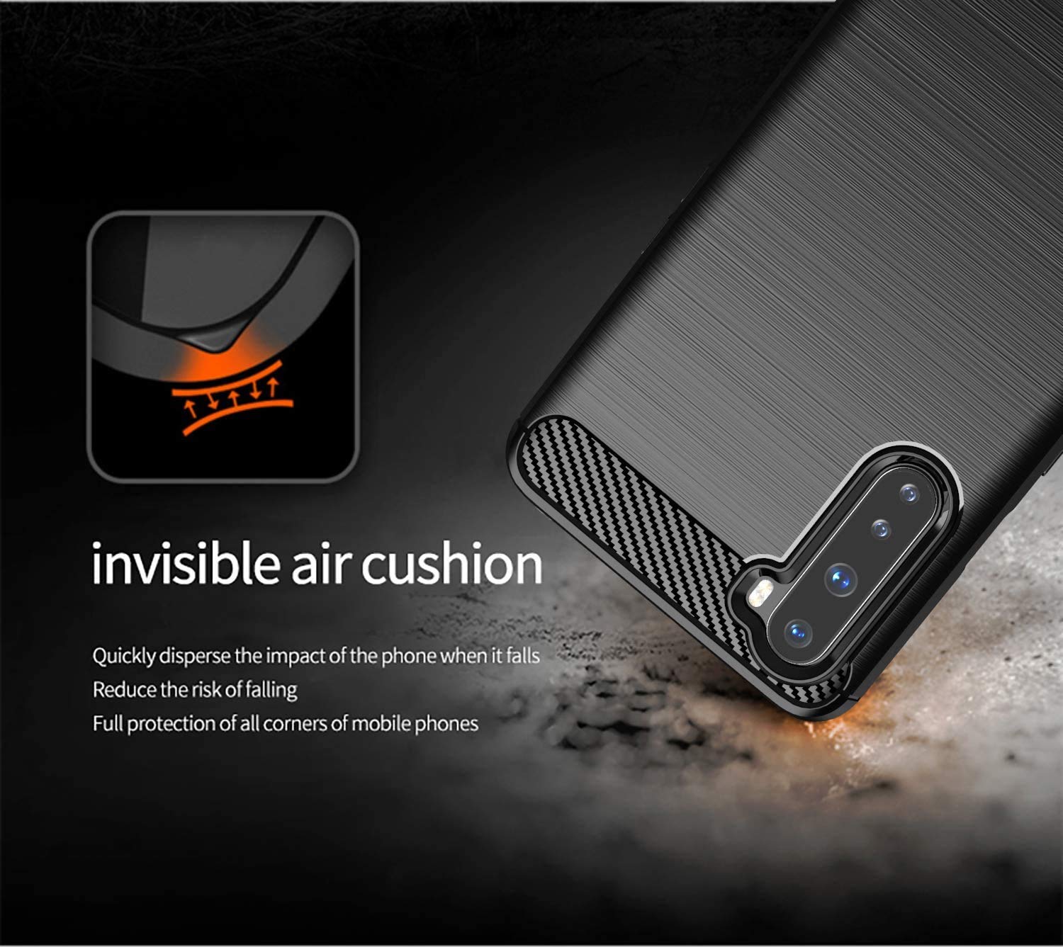 Tarkan Carbon Fibre Rugged Shock Proof Soft Back Case Cover for OnePlus Nord (Black)