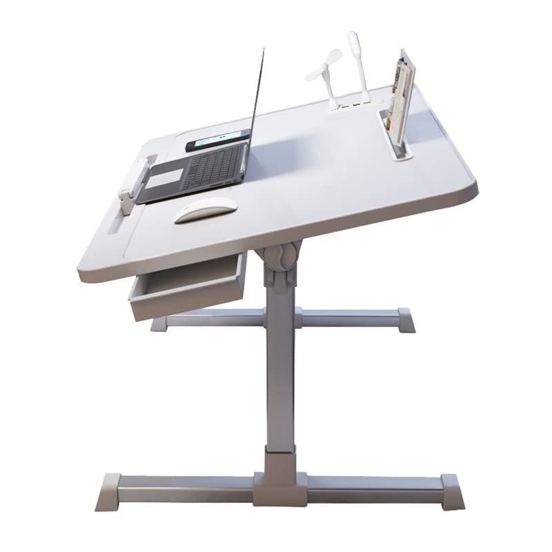 LushTree Laptop Bed Tray Table, Foldable Desk Stand with Adjustable Height & Angle, Drawer, USB Hub with LED Light & Fan (White)