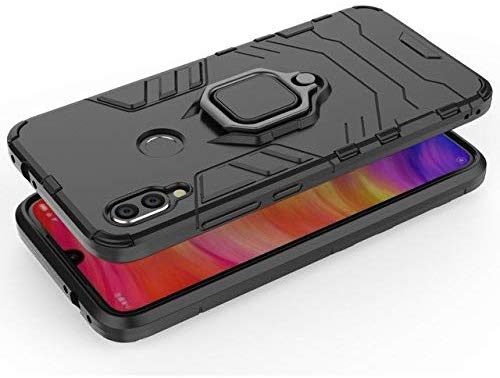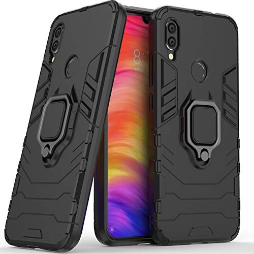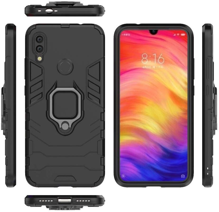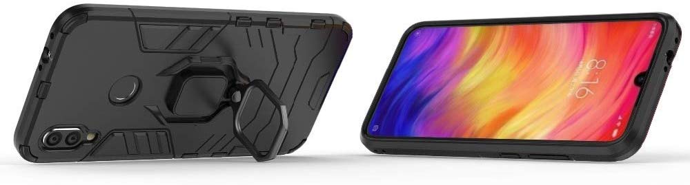 TARKAN Ring Holder Heavy Duty Shockproof Armor Back Case Cover with Stand for Redmi Note 7s & Redmi Note 7 Pro & Redmi Note 7 (Black)